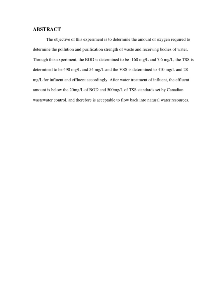 Lab Report 4 Final 1 Objective This Experiment Was Conducted To Measure The Five Day Biochemical Oxygen Demand Bod5 Of Samples Of Raw Wastewater Course Hero